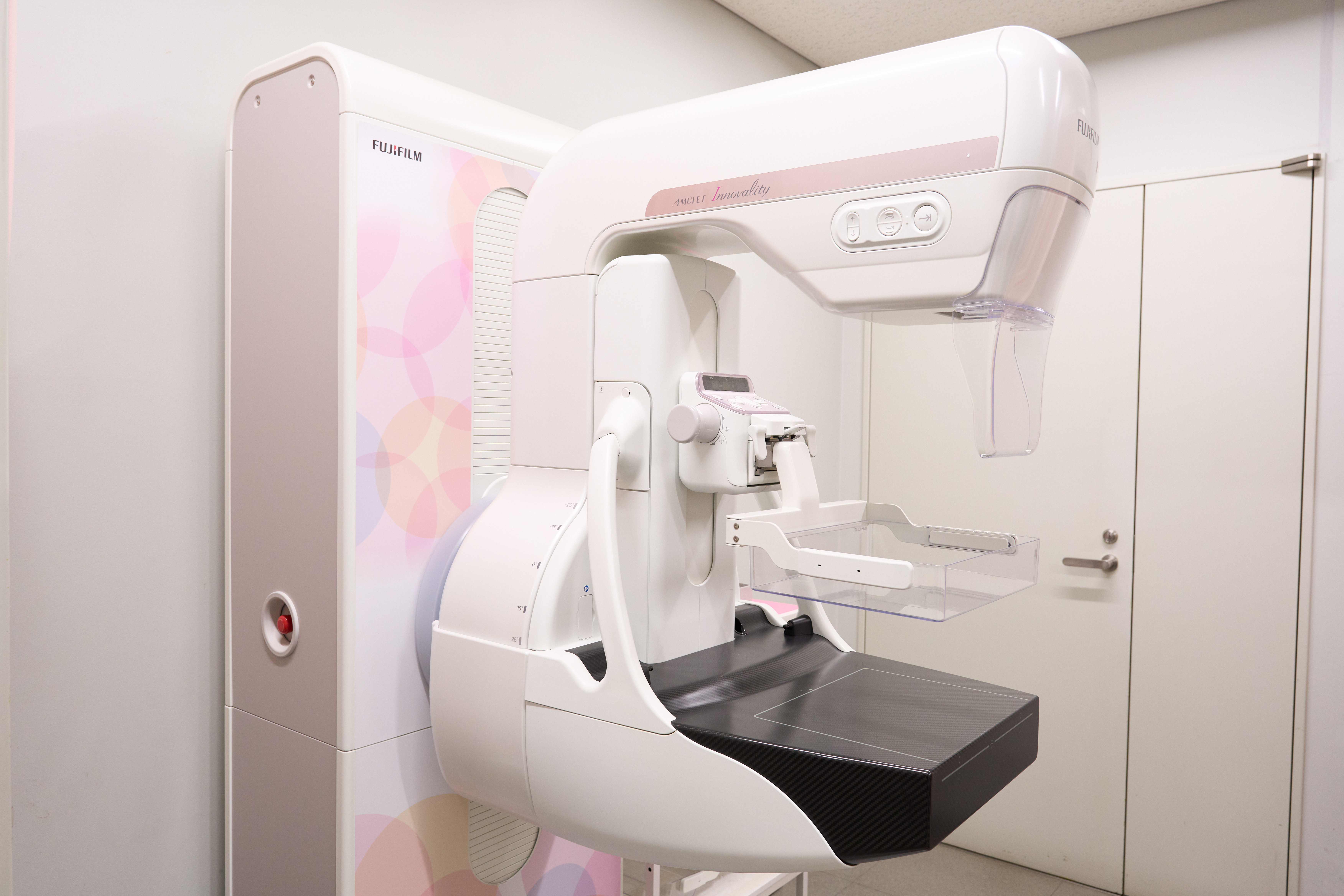 マンモグラフィは乳房専用のX線装置です。高画質で低線量の富士フイルムメディカル社製「AMULET Innovality」を採用し、乳がんや良性腫瘍、石灰化などの異常を早期に発見するための検査を行います。撮影は女性の診療放射線技師が担当し、視触診では確認が難しい病変も検出します。